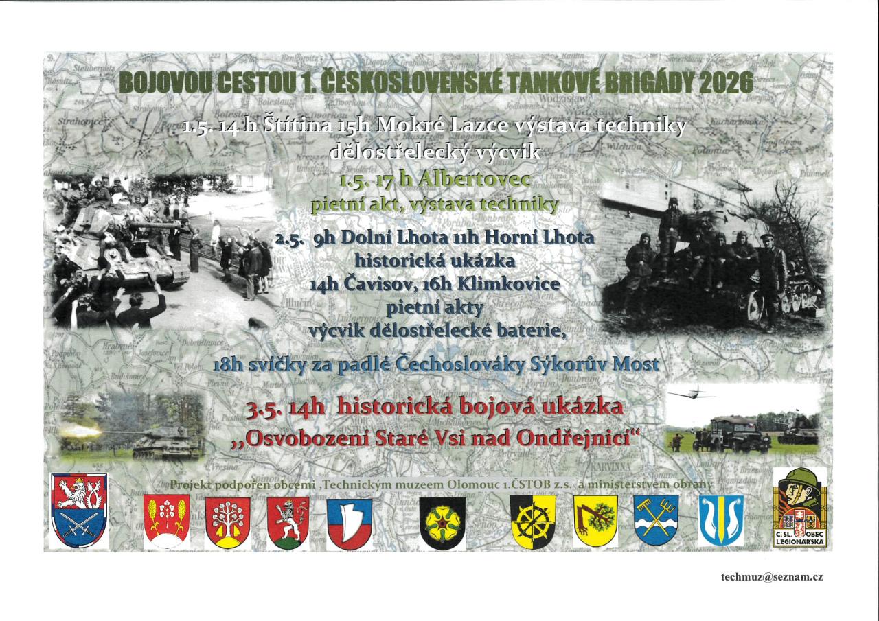 V sobotu 2.5.2026 v 9:00 hodin dorazí k místnímu hřbitovu vojenská vozidla. Proběhne položení květin. Zájemci budou mít možnost prohlédnout si techniku.