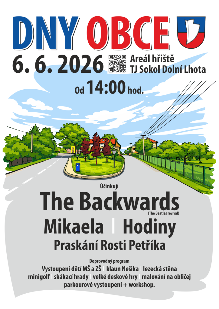 Srdečně zveme na Dny obce Dolní Lhota, které se budou konat v sobotu 6.6.2026 od 14:00 hodin na hřišti TJ Sokol Dolní Lhota.